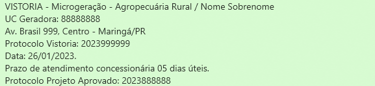 Quando estiver concluído, solicito a vistoria e lhe envio o protocolo.