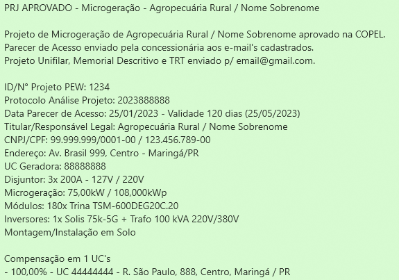 APROVAÇÃO / HOMOLOGAÇÃO DE PROJETO DE MICROGERAÇÃO DISTRIBUÍDA DE ENERGIA SOLAR FOTOVOLTAICA